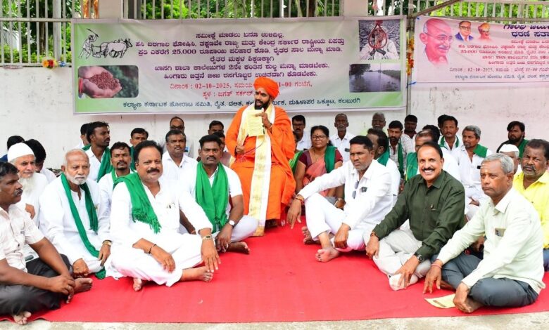 ಕಲಬುರಗಿ: ರೈತರ ನೋವು ದೇಶದ ನೋವಾಗಿದ್ದು, ಅನ್ನದಾತರ ಸಂಕಷ್ಟಕ್ಕೆ ಕೇಂದ್ರ ಮತ್ತು ರಾಜ್ಯ ಸರ್ಕಾರ ತಕ್ಷಣ ಮಧ್ಯಪ್ರವೇಶಿಸಿ ನೆರವಿಗೆ ಧಾವಿಸಬೇಕು ಎಂದು ಚಿತ್ತಾಪುರ ಕರದಾಳು ಬ್ರಹ್ಮಶ್ರೀ ನಾರಾಯಣ ಗುರು ಶಕ್ತಿ ಪೀಠದ ಡಾ. ಪ್ರಣವಾನಂದ ಶ್ರೀಗಳು ಒತ್ತಾಯಿಸಿದರು.