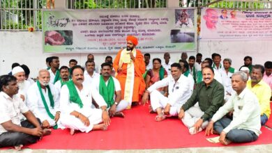 ಸಾಲಮನ್ನಾ, ಹಸಿಬರ ಘೋಷಣೆಗೆ ಒತ್ತಾಯಿಸಿ ಧರಣಿ – ರೈತರ ನೋವಿಗೆ ಈಡಿಗ ಸಮುದಾಯದ ಸಂಪೂರ್ಣ ಬೆಂಬಲ: ಡಾ. ಪ್ರಣವಾನಂದ ಶ್ರೀ
