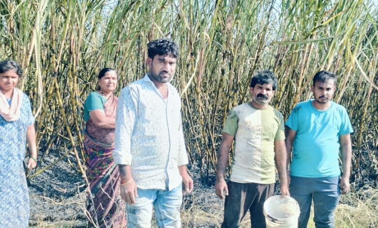 ಕಟಾವಿಗೆ ಬಂದಿದ್ದ ಕಬ್ಬಿನ ಬೆಳೆಗೆ ವಿದ್ಯುತ್ ತಂತಿ ತಗುಲಿ ಬೆಂಕಿ: ರೈತನ ಕನಸು ಭಸ್ಮ