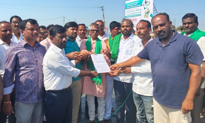 ಕಲ್ಯಾಣ ಕರ್ನಾಟಕ ರೈತರ ಬೇಡಿಕೆಗಳನ್ನು ಈಡೇರಿಸಲು ಒತ್ತಾಯಿಸಿ ರಸ್ತೆ ತಡೆದು ಪ್ರತಿಭಟನೆ