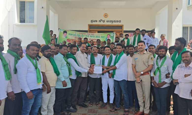 ಚಿತ್ತಾಪುರ: ಅತಿವೃಷ್ಟಿಯಿಂದ ಬೆಳೆ ಹಾನಿಗೊಳಗಾದ ಚಿತ್ತಾಪುರ ತಾಲೂಕವನ್ನು ಅತಿವೃಷ್ಟಿ ತಾಲೂಕವೆಂದು ಘೋಷಣೆ ಮಾಡಿ,ಎಲ್ಲ ರೈತರಿಗೆ ಪ್ರತಿ ಎಕರೆಗೆ ೨೫ ಸಾವಿರ ರೂಪಾಯಿ ಬೆಳೆ ಪರಿಹಾರ ನೀಡಬೇಕು ಎಂದು ಕರ್ನಾಟಕ ರಾಜ್ಯ ರೈತ ಸಂಘ ಹಸಿರು ಸೇನೆ (ವಾಸುದೇವ ಮೇಟಿ ಬಣ) ತಾಲೂಕು ಅಧ್ಯಕ್ಷ ಮೌನೇಶ ಭಂಕಲಗಿ ಒತ್ತಾಯಿಸಿದರು.